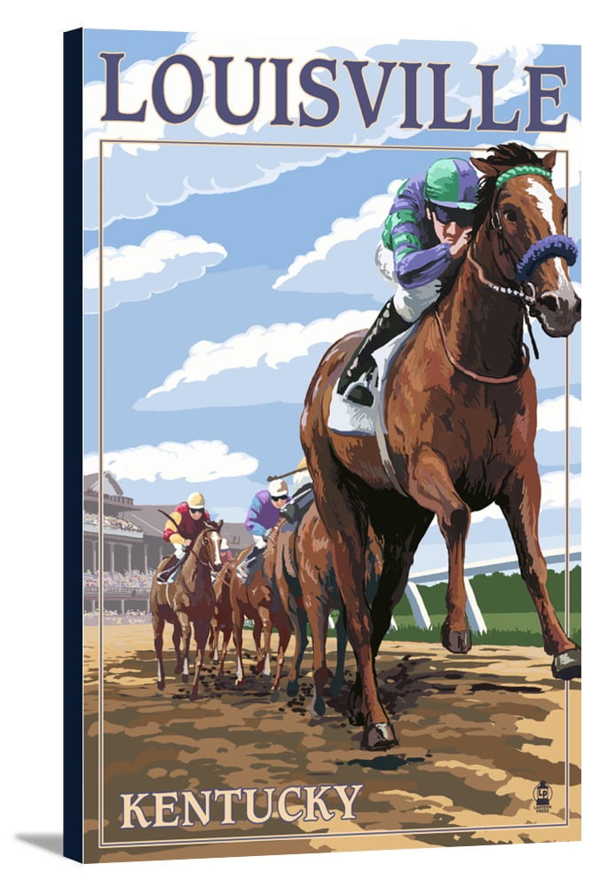 Louisville Kentucky Horse Racing Track Scene Lantern Press Artwork 12x18 Gallery Wrapped Stretched Canvas Walmart Com